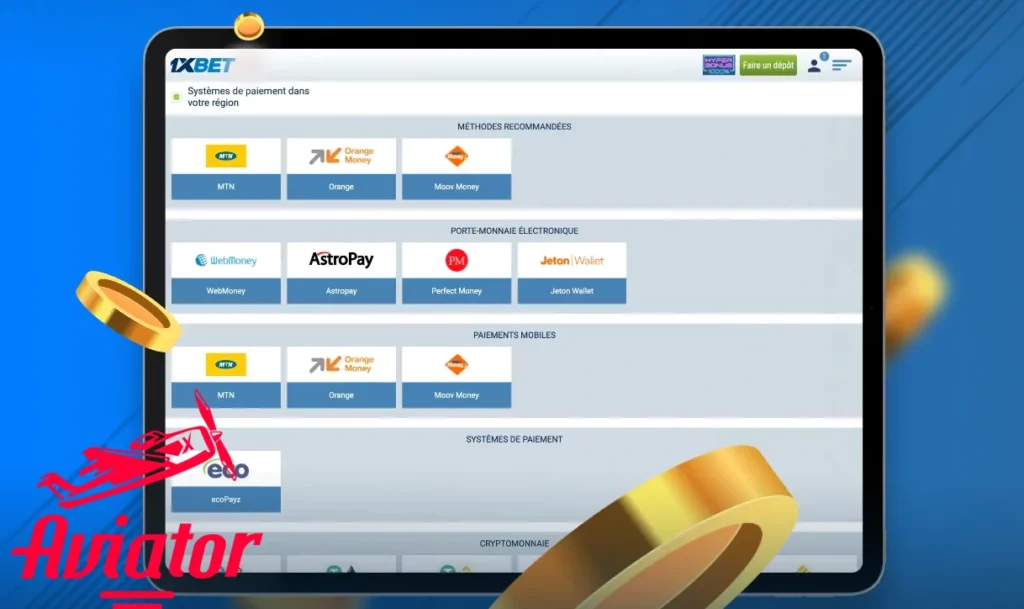 - Comment effectuer un dépôt 1xbet pour jouer à Aviator ?