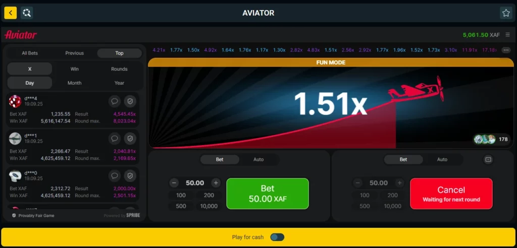 - Décider quand encaisser – Le joueur doit cliquer sur « Cashout » avant que l’avion ne disparaisse. Le gain correspond alors à la mise multipliée par le multiplicateur affiché.