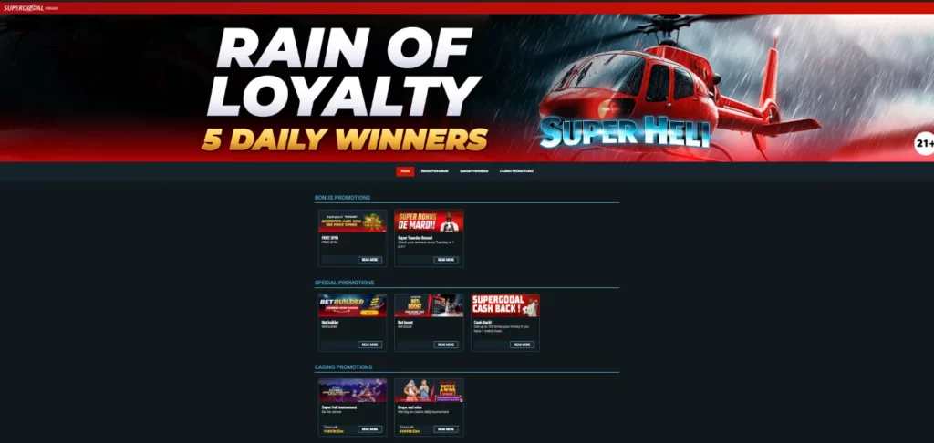 Supergooal met en avant des promotions hebdomadaires sur les dépôts. Ces bonus peuvent prendre plusieurs formes :